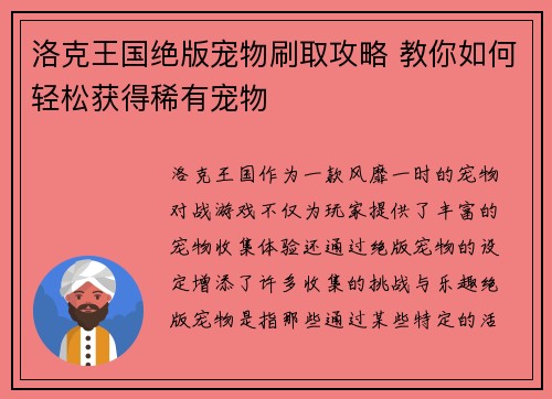 本文将深入探讨《魔力宝贝手游》的激活码领取方法与使用技巧,全面帮助玩家掌握如何通过激活码获得各种游戏奖励及其相关技巧。文章内容分为四个主要部分,首先介绍激活码的获取途径和常见方式;然后分析如何正确使用激活码,避免错误操作;接着讨论激活码使用的相关技巧,包括使用时间的选择和合适的兑换时机;最后,探讨如...